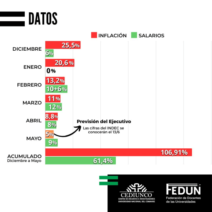 Hasta el momento, el gobierno no brindó una solución concreta a las demandas salariales. Los gremios de las universidades aseguraron haber sufrido una pérdida significativa en el poder adquisitivo de los salarios de docentes y nodocentes, con incrementos insuficientes en los últimos meses: un 16 por ciento en febrero, un 12 por ciento en marzo, un 8 por ciento en abril y un 9 por ciento en mayo. Estos aumentos no lograron compensar la alta inflación que afecta al país.