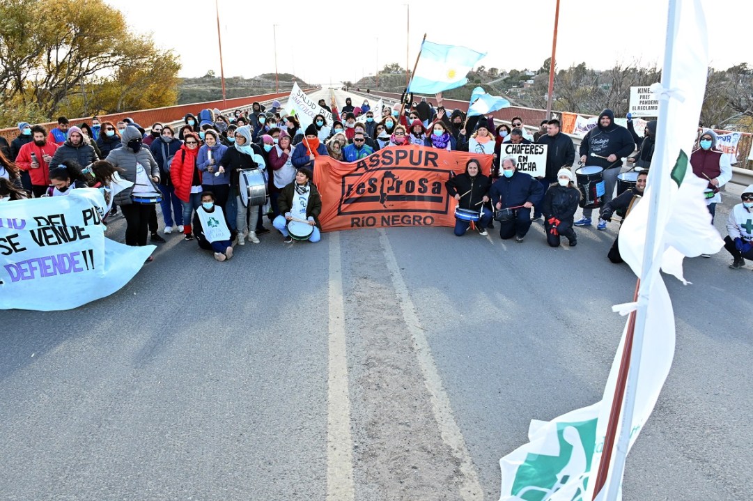 En la Comarca Viedma-Patagones, Asspur cortaron de manera total el Puente Nuevo (Basilio Villarino) que une ambas localidades. Solo levantaban la medida ante una emergencia.
