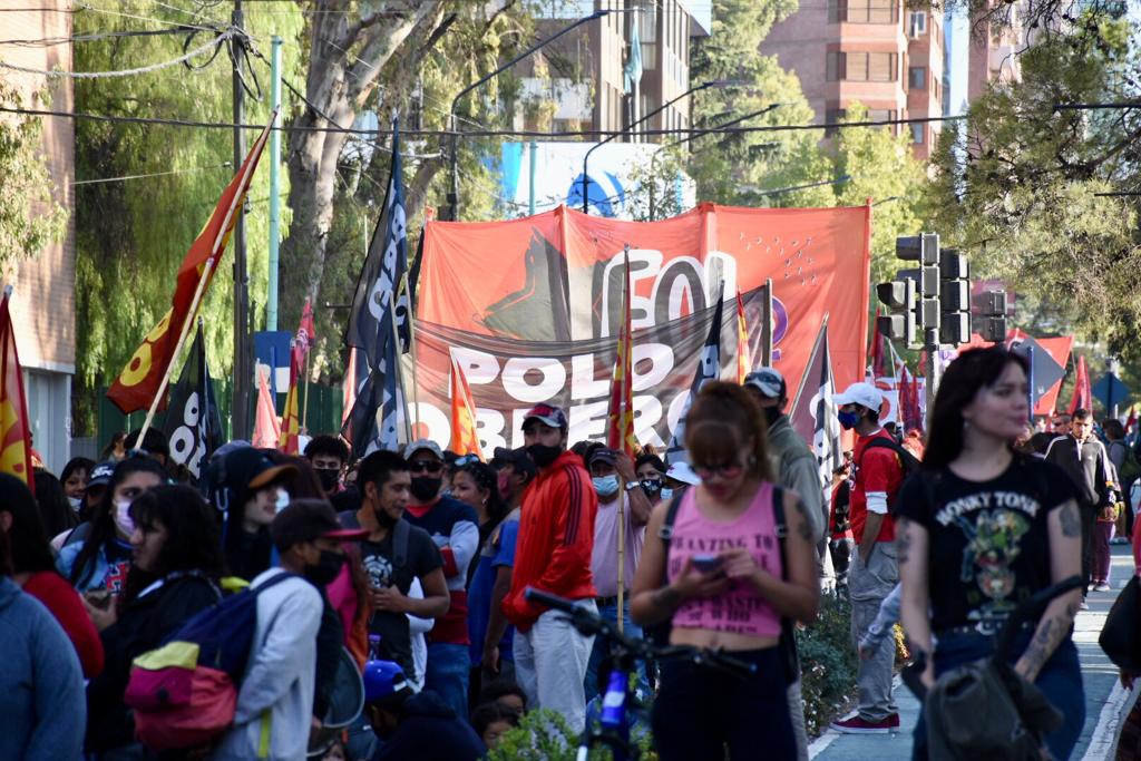 Las organizaciones sociales, que desde anoche realizaban un acampe en el monumento a San Martín, se movilizaron hoy por las calles neuquinas y realizaron un acto en Casa de Gobierno, en el contexto de la Jornada Nacional por un Salario Digno.