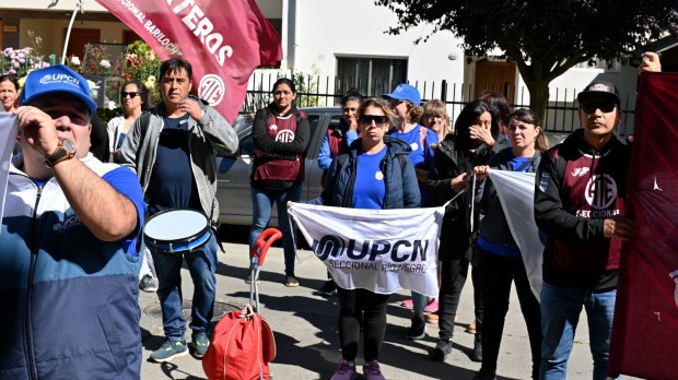 Gremios ATE y UPCN reclamaron juntos por la renovación de contratos de los porteros de Bariloche Los gremios estatales se manifestaron en el Consejo Escolar Zona Andina. Hay 280 trabajadores de escuelas cuyos contratos se vencen mañana. Por Soledad Maradona