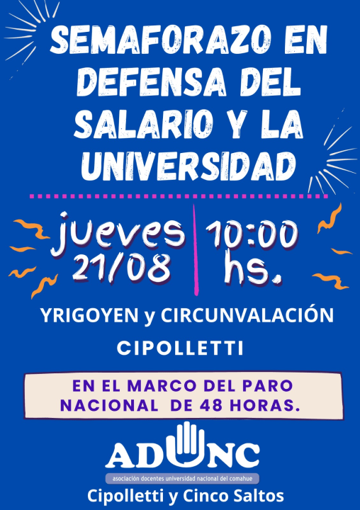Además, desde ADUNC anticiparon que se sumará a la marcha federal universitaria prevista para la primera quincena de septiembre, como parte de las acciones de visibilización del reclamo salarial.