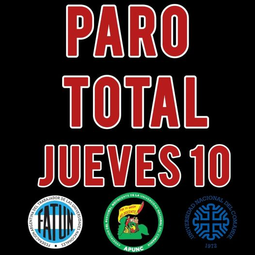 Al paro, también confirmaron su adhesión Apunc, en representación del personal no docente de la UNCo.