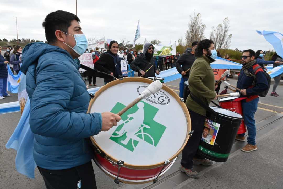 La Asociación Sindical de Salud Pública de Río Negro (Asspur) cumple con el paro de 24 horas en los hospitales rionegrinos con una movilización por la ciudad y el posterior corte en el acceso al puente Basilio Villarino que conecta la capital provincial con Carmen de Patagones.