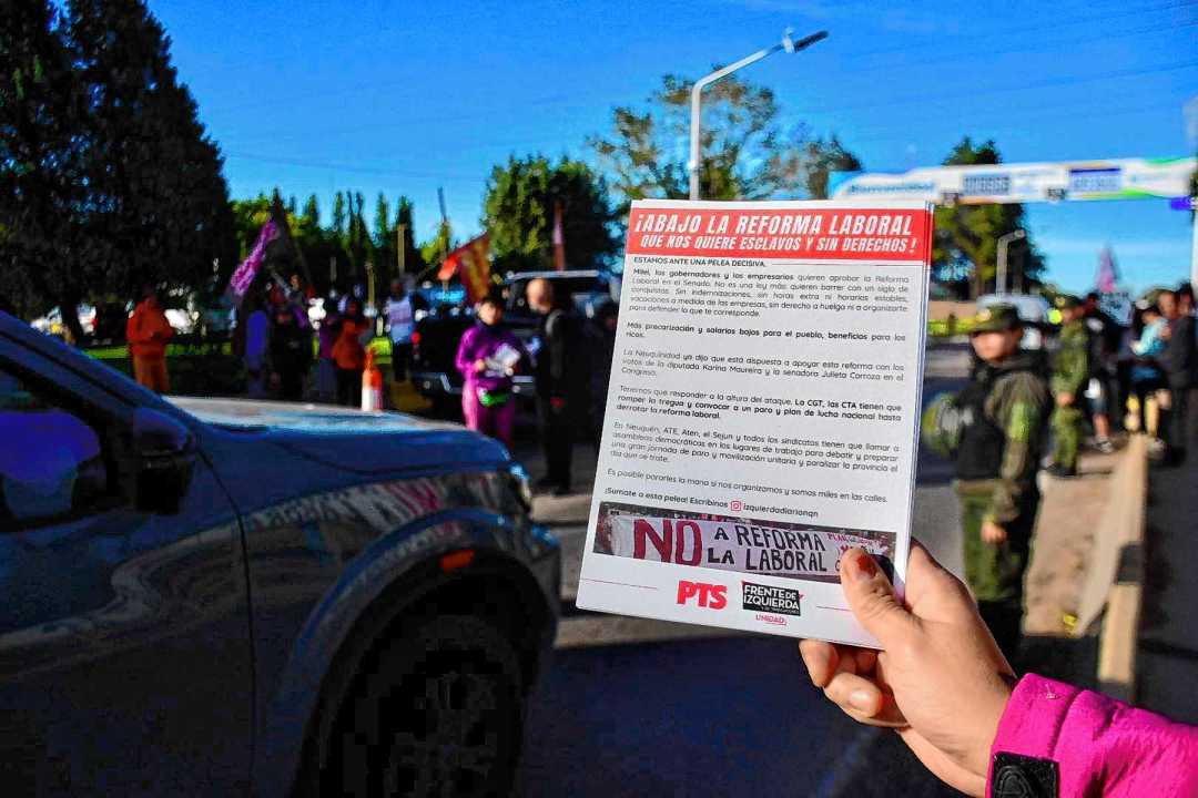Organizaciones sociales, gremios y trabajadores iniciaron el miércoles con paro y movilizaciones en distintos puntos del país para manifestar su rechazo a la reforma laboral. A las 8, un grupo se ubicó en el puente que une las ciudades de Neuquén y Cipolletti para realizar una volanteadas.
