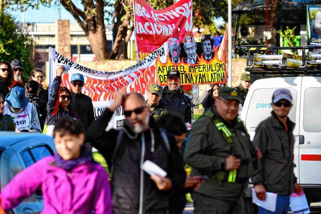 La protesta movilizó a personal de Gendarmería con el protocolo de antipiquetes y si bien no se trata de un corte, se registran demoras en el tránsito.