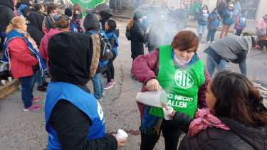 Protesta y olla popular en pleno centro de Roca por Salario Básico Universal