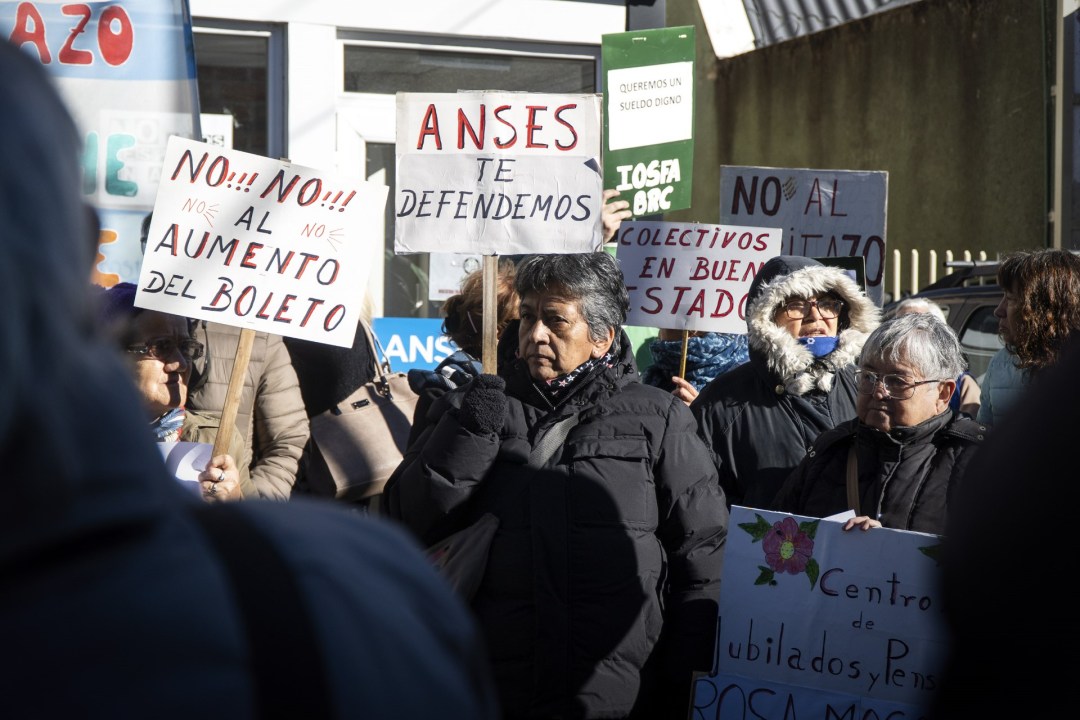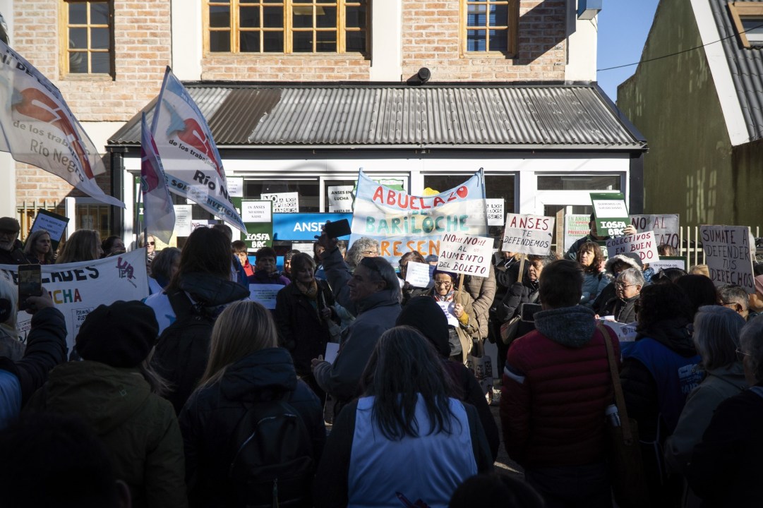 En la concentración realizada frente al edificio de la calle John O´Connor estuvieron la agrupación El Abuelazo, el centro de jubilados Rosa Mosqueta, la CTA, Unter, ATE, la organización Adultos Mayores Activos de Bariloche, el sindicato interno de Anses y referentes de partidos de izquierda.