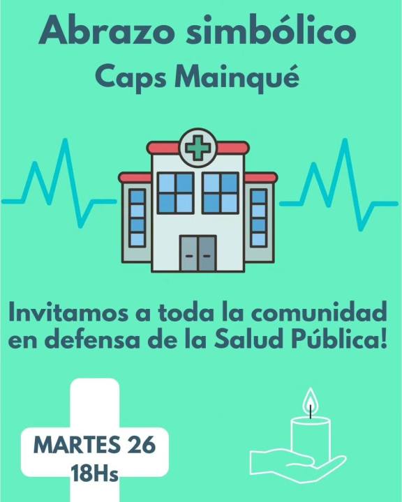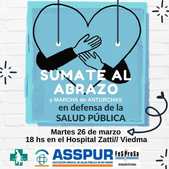 En Huergo y Mainqué el reclamo también tomará forma de abrazo simbólico. A diferencia de Roca y Viedma, será este miércoles 27 a las 18:30 horas. Tendrá lugar en el hospital Carlos Ratti y en los centros asistenciales.