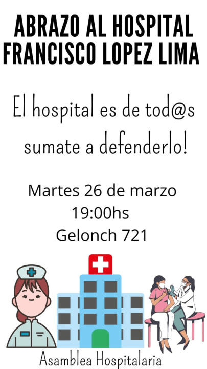 Para este martes 26 se definió un abrazo simbólico al hospital. Será a partir de las 18:30.
