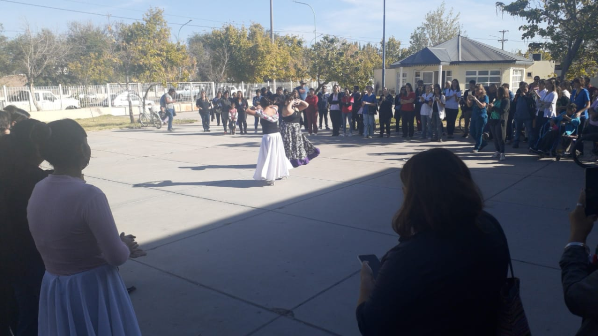 Además, se acercaron artistas a apoyar los reclamos de los trabajadores. Esta lunes, se realizó una muestra de danzas folclóricas en las afueras del nosocomio de Cipolletti.