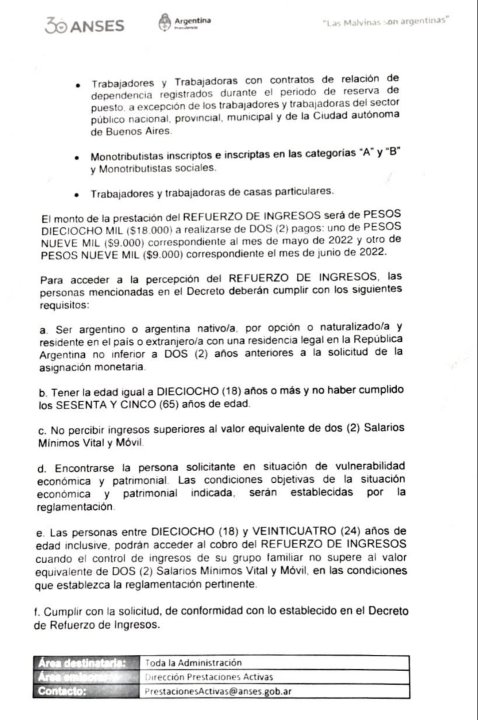 Cabe recordar que hoy se abrió la segunda etapa de inscripción para este bono de refuerzo de $18.000, que entregará el Gobierno Nacional en dos cuotas y que busca compensar el impacto de la inflación. La primera parte de la inscripción comenzó la semana pasada y continuará hasta el 7 de mayo.