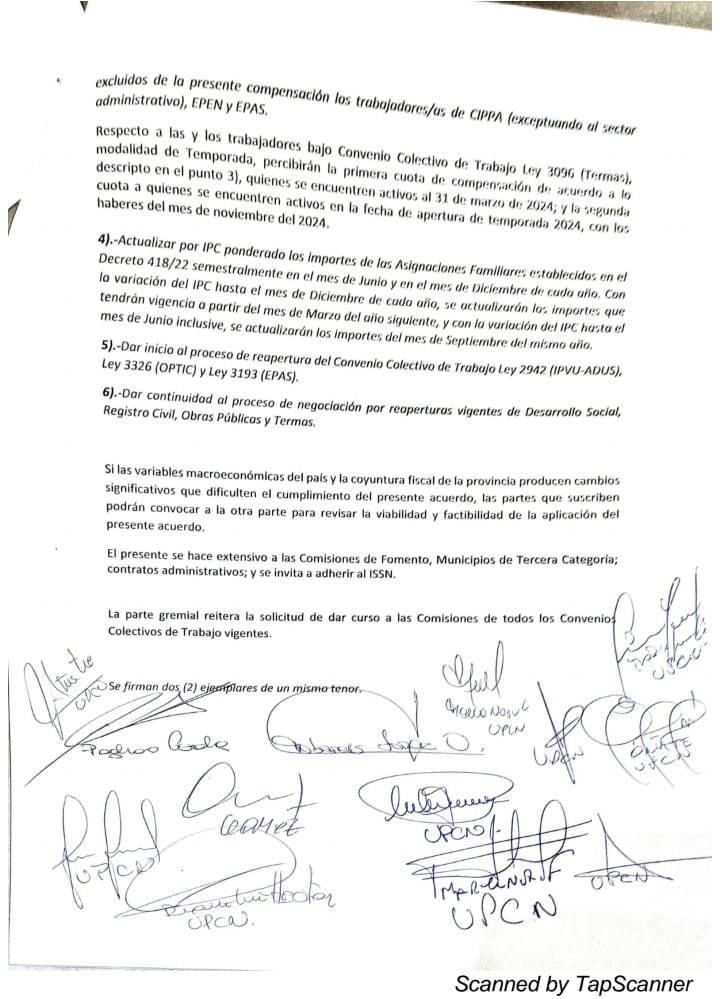 Allí los representantes del gremio aceptaron la suma de $150.000, en carácter de extraordinario, no remunerativo y no bonificable. Además, se acordó la actualización por IPC, para el periodo febrero 2024 a enero de 2025.
