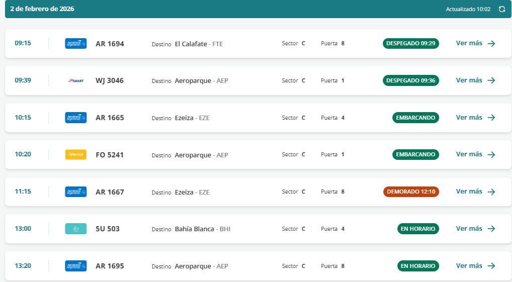 En Bariloche, uno de los servicios presenta demoras. Se trata del AR1667 de Aerolíneas Argentinas que tiene como destino Ezeiza.