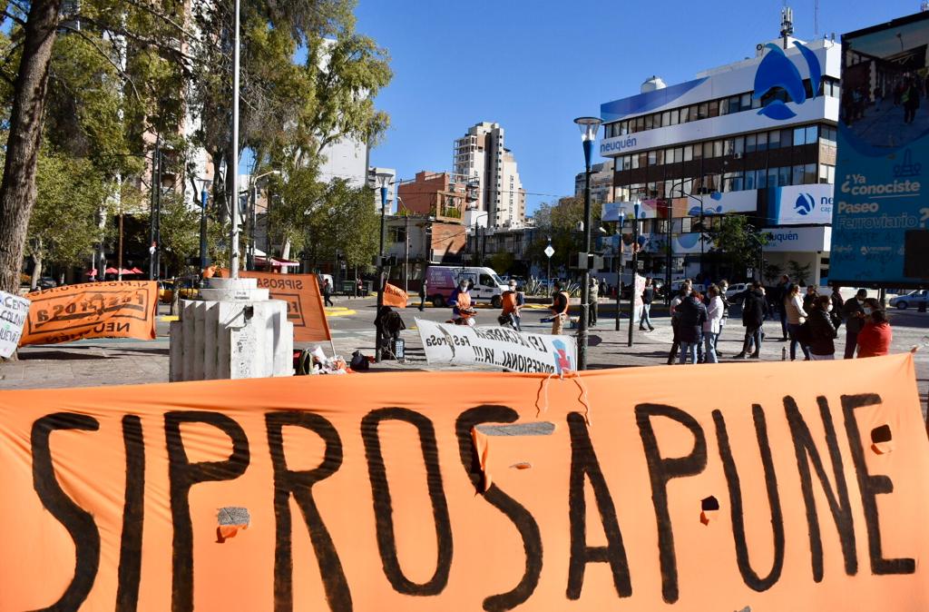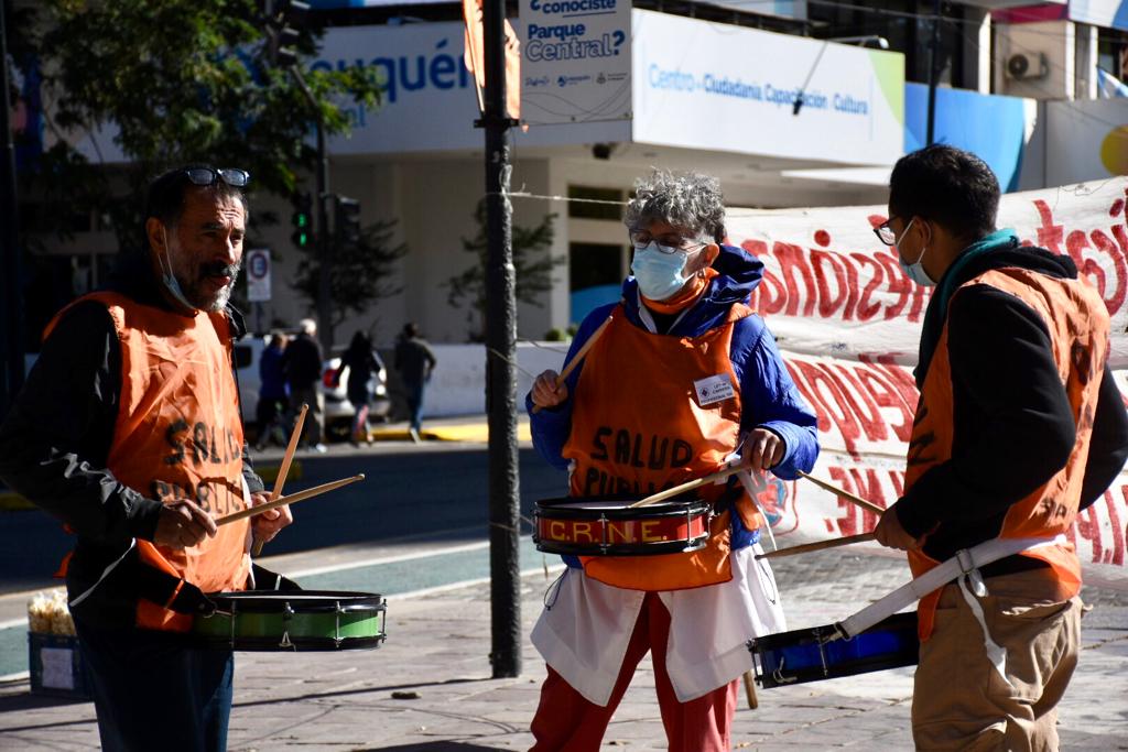 Auxiliares de servicio agrupados en ATE y profesionales de Salud de Siprosapune, cada uno por su lado, están de paro y marcharon por el centro de Neuquén. Ambos tenían como destino la Casa de Gobierno. Esta mañana caótica para Neuquén comenzó con familias de choferes bloqueando la salida de Autobuses Neuquén hasta casi la mitad de la mañana, para denunciar que la empresa no pagaba la cuota alimentaria. Además, el FOL y el Frente Popular Darío Santillán anunciaron un «feriazo» en el monumento.