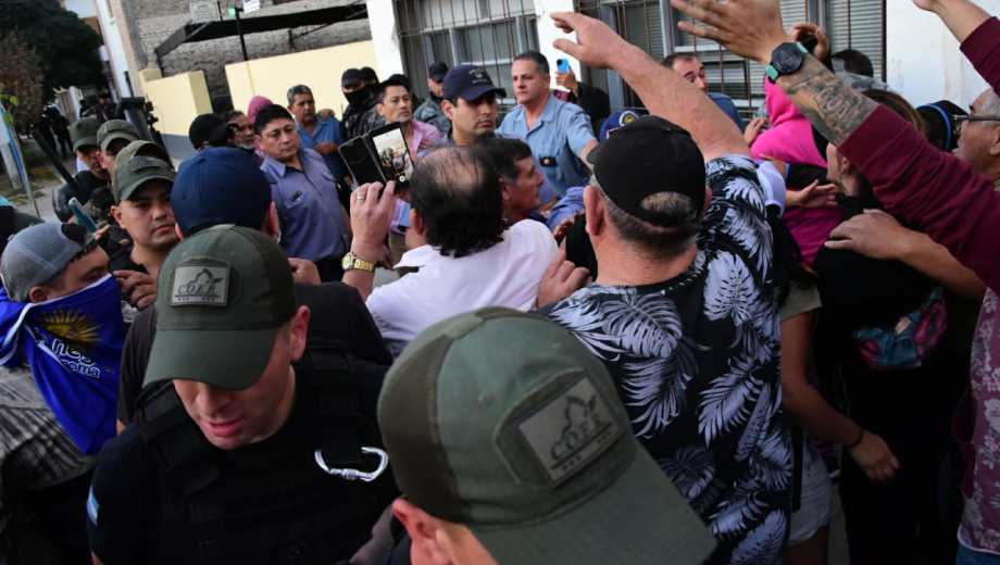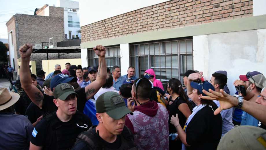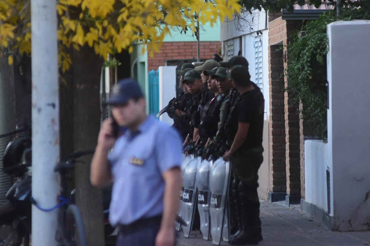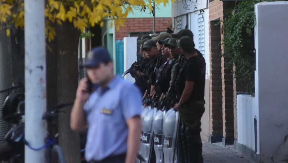 Los uniformados intentaron llegar al edificio pero los manifestantes cortaron el paso por calle Córdoba. Otro grupo de efectivos se mantiene expectante en el acceso de calle Tucumán.