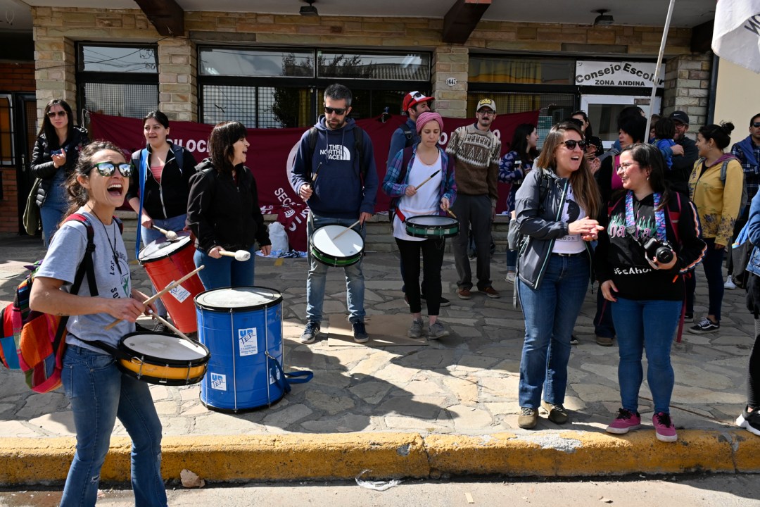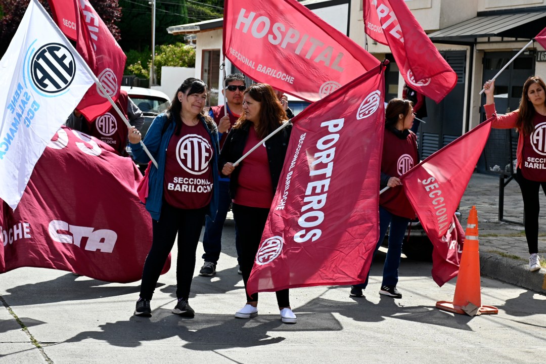 Los dos gremios estatales rionegrinos unieron fuerzas en la cordillera para llevar su reclamo por los descuentos y errores en liquidaciones al Consejo Escolar Zona Andina y posteriormente a la rotonda del Ñireco, donde confluyeron además con un reclamo de organizaciones de la economía popular por el plan Potenciar Trabaja.
