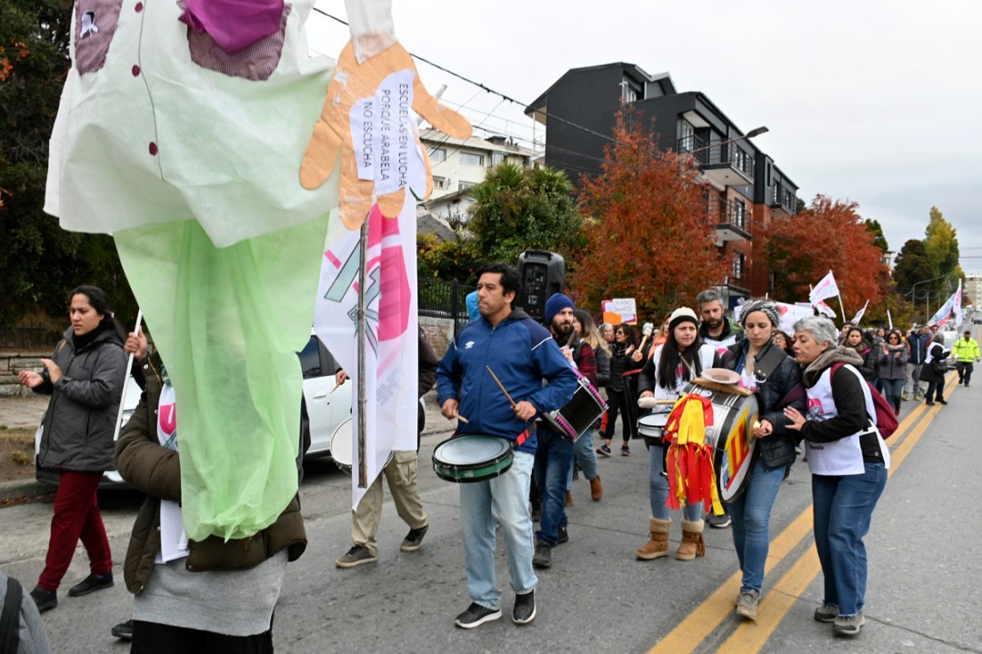 "Sobran motivos para seguir luchando" decía el cartel que encabezó la marcha de trabajadores de la salud y docentes hacia la rotonda del Ñireco esta mañana. En ese sector, los manifestantes realizaron cortes parciales de la avenida 12 de Octubre, entregaron panfletos a los conductores y llevaron adelante una radio abierta.