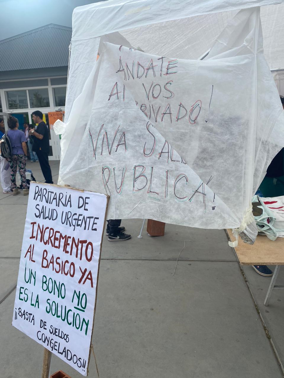 Si bien, días atrás la delegada de Asspur y trabajadora social, Patricia Baeza, destacó que el reclamo es «netamente salarial», los trabajadores también exigen insumos y recursos para los hospitales.
