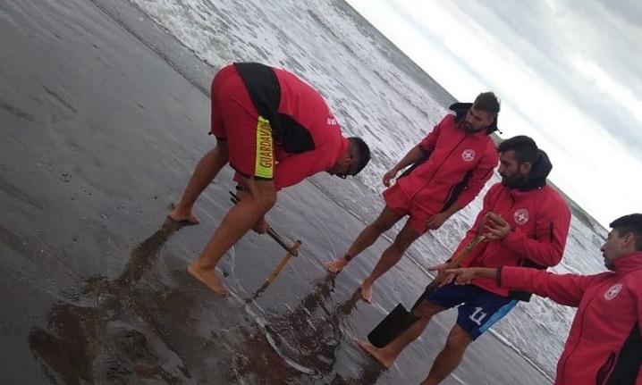 Cinco guardavidas municipales lograron extraer dos trasmallos alojados en la playa denominada “Bajada de Picoto”, del balneario El Cóndor.