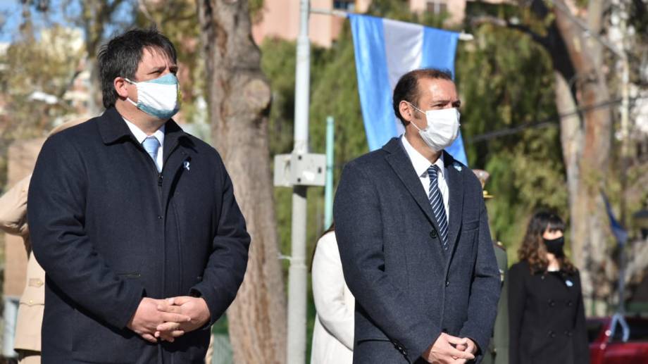 En el evento participaron el gobernador, Omar Gutiérrez; su vice, Marcos Koopmann; la ministra de Gobierno y Seguridad, Vanina Merlo, y el intendente capitalino, Mariano Gaido. Sin embargo, no hubo discursos, sino una semblanza de San Martín y una ofrenda floral.