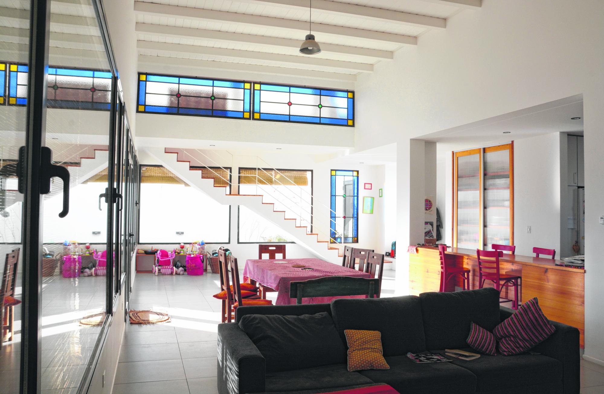 Todo separado por una doble altura que atraviesa la casa de punta a punta y desde la planta baja hasta la planta alta.