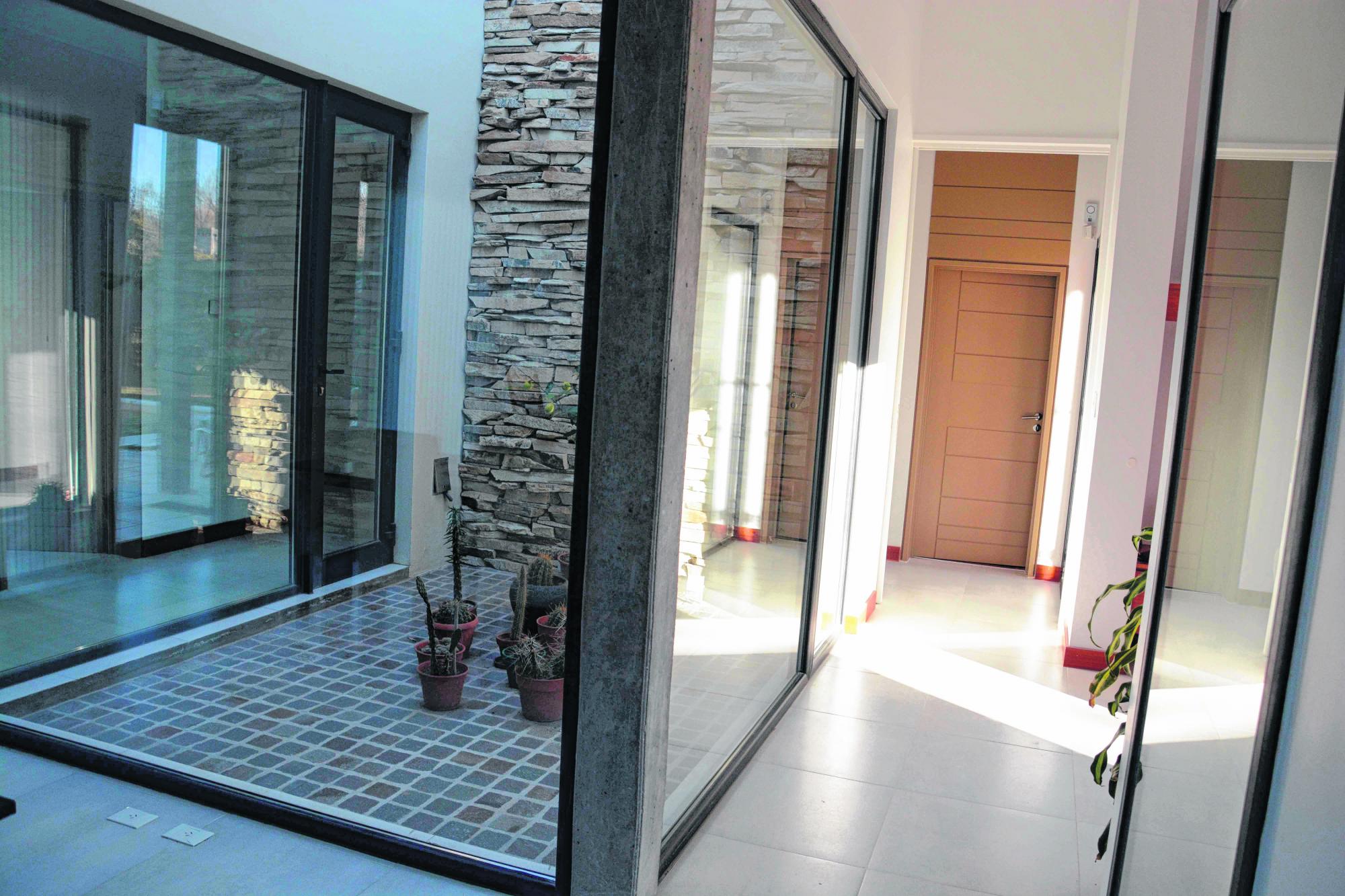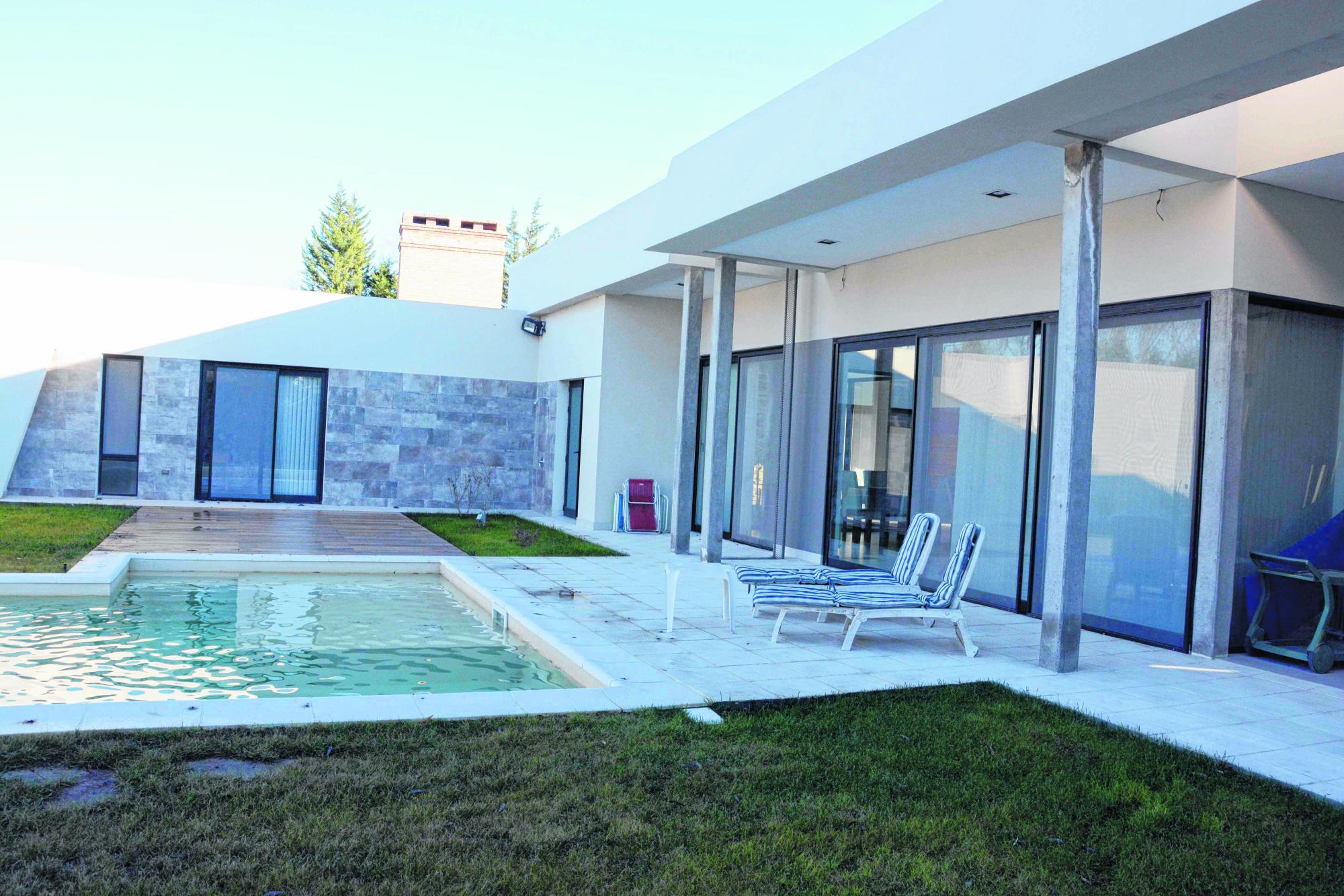 La huella de la vivienda se expande por medio de los diferentes patios que pretenden apoderarse del “afuera” y diluir los límites físicos. Funciona esta manera la pileta con ventanas que van del piso al techo.