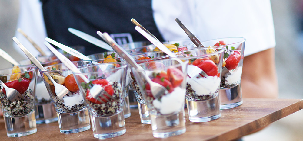 La comida en general es más práctica, en pequeñas porciones para comer con las manos. La bebida, sí, tiene una importancia vital. Cada uno se sirve lo que quiere en el momento que quiere en las bandejas y mesas distribuidas en varias lugares del ambiente.