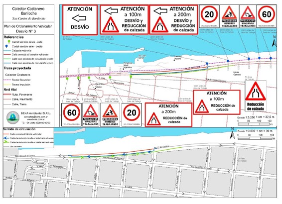En los sectores donde sea necesario trabajar sobre la calzada, se proyectan esquemas de desvió por vías provisorias de circulación del tránsito en tres puntos.