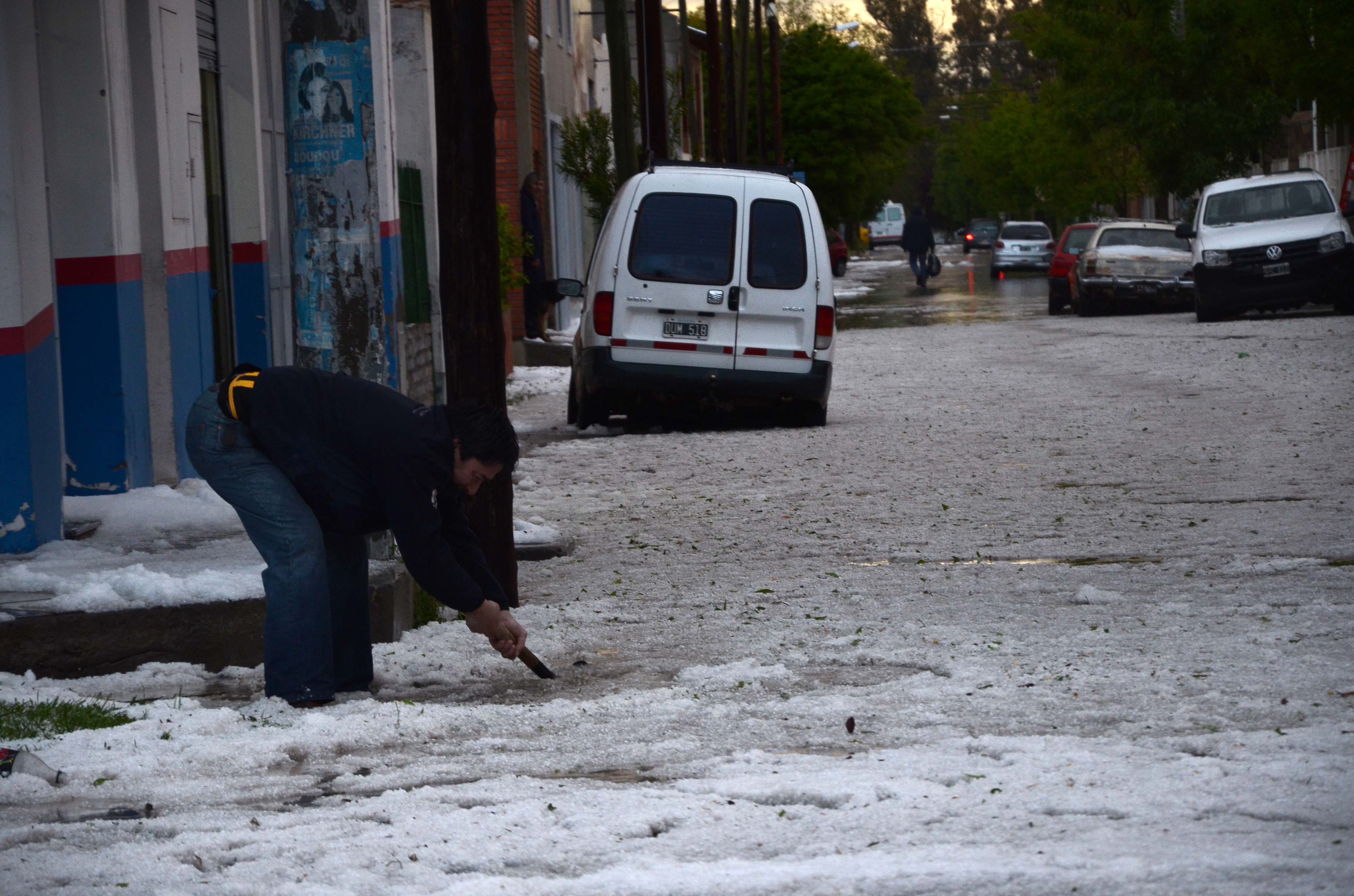 La caída de granizo se extendió por unos 15 minutos y la lluvia duró un poco más.