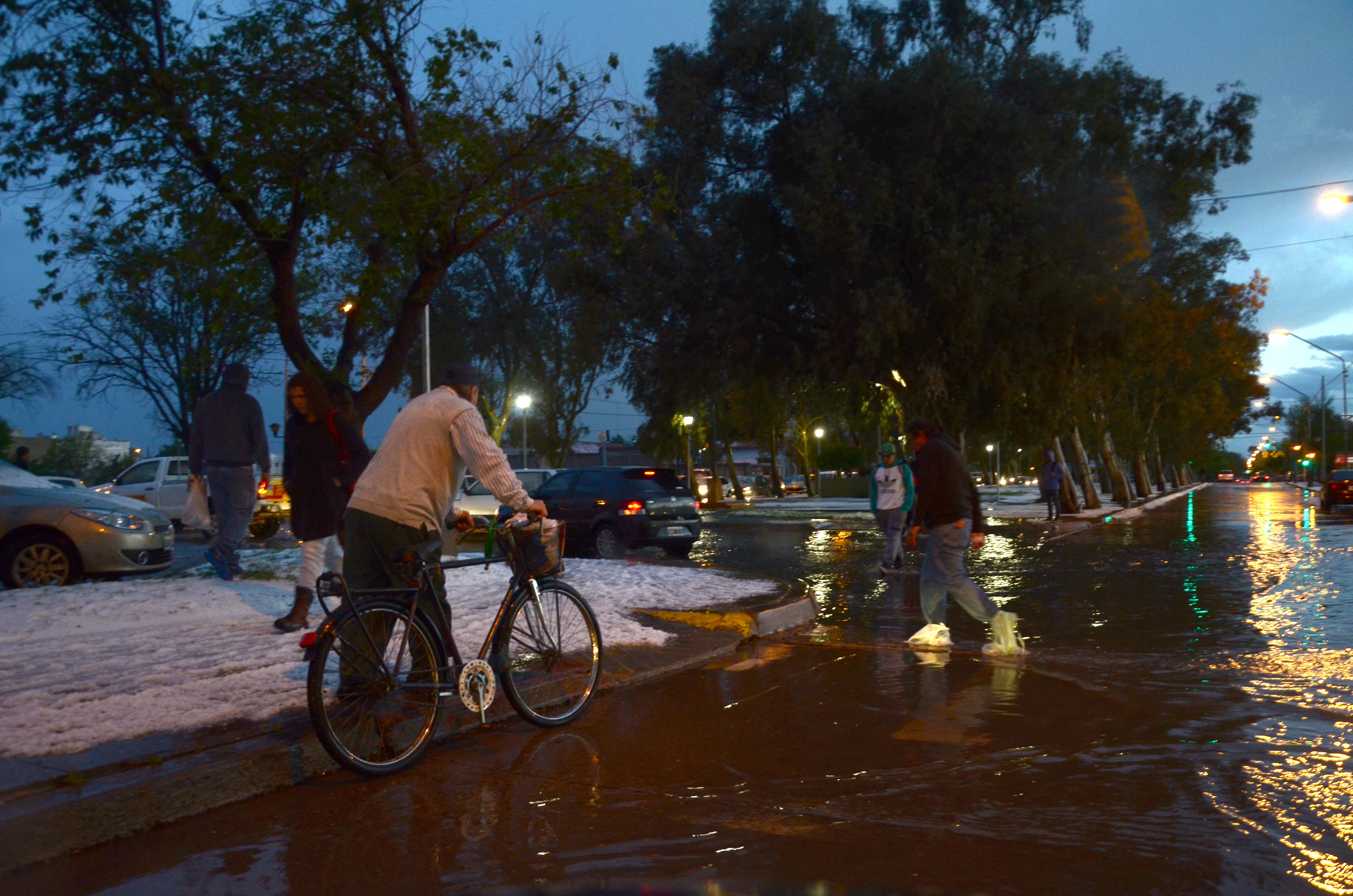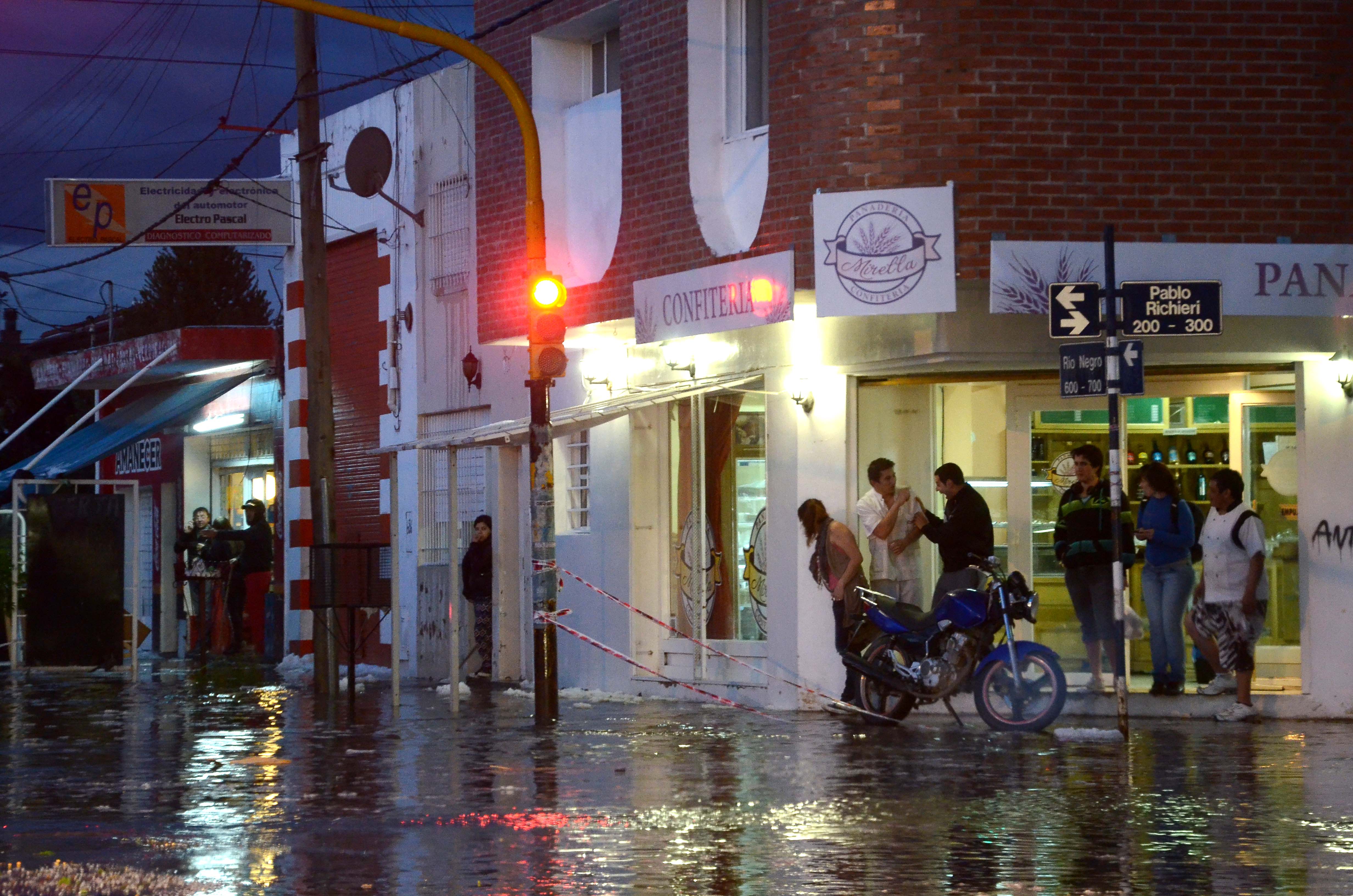 El temporal fue acompañado con intensas precipitaciones que inundaron diversos sectores del bajo. El agua inundó las principales arterias de circulación y llegó a ingresar en los locales comerciales.