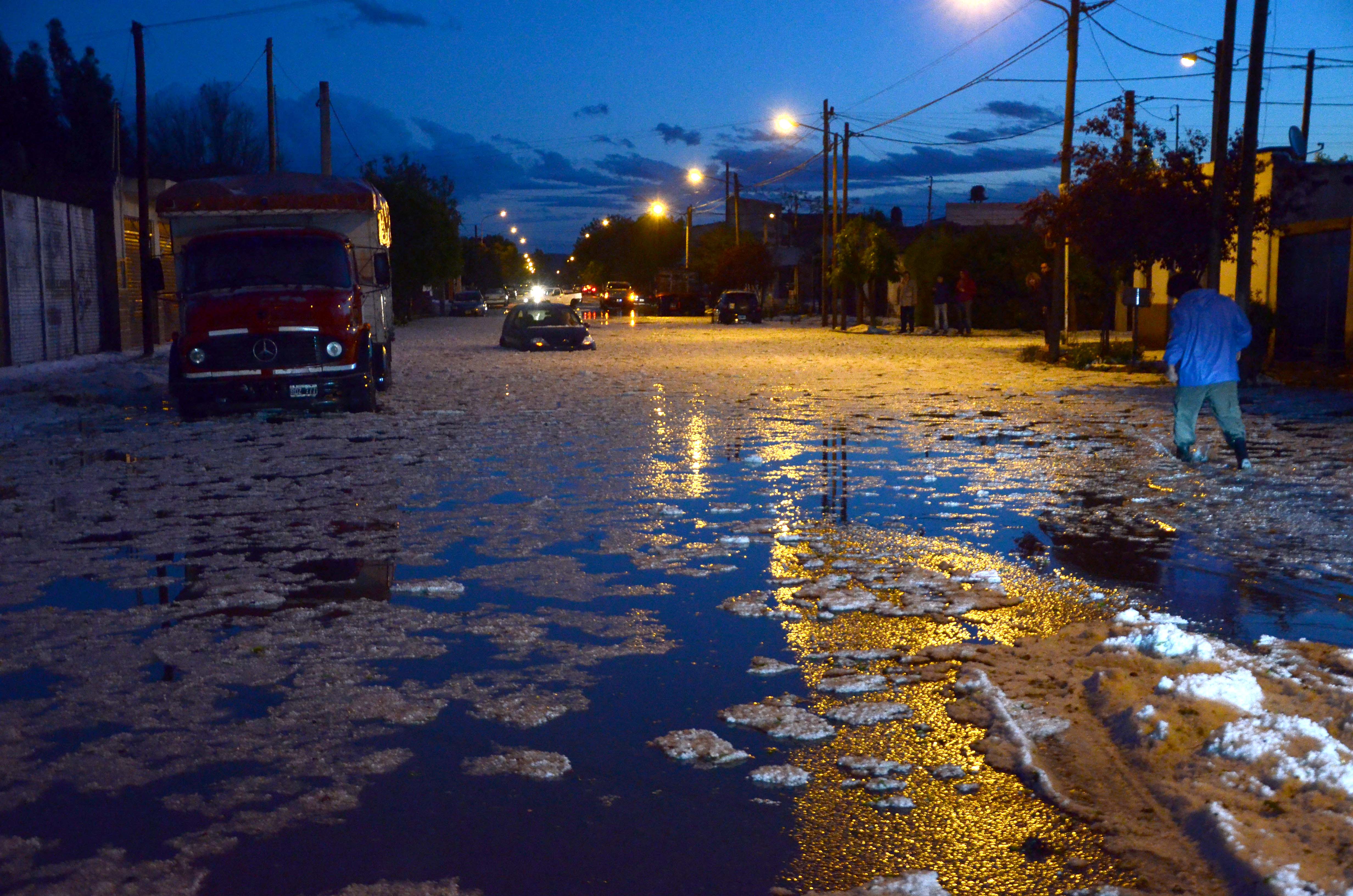 El temporal de granizo y lluvia inundó los autos y comercios del bajo neuquino.