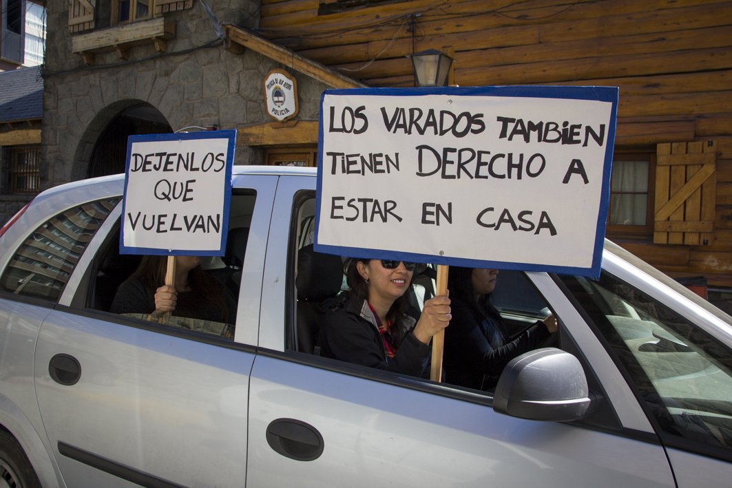 Un grupo de barilochenses reclamó esta mañana en el Centro Cívico por la repatriación de sus familiares varados en Chile. Se concentraron en la rotonda del Ñireco, se dirigieron hacia la Dirección de Migraciones donde tocaron bocina y confluyeron en la plaza del Centro Cívico.