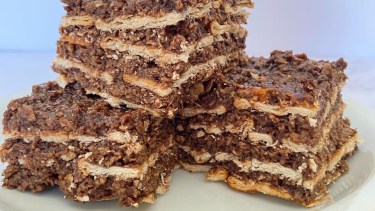 Colocar la leche a fuego lento, agregar avena, azúcar, dulce de leche y cacao. Cocinar hasta que espese. Por otro lado, en el recipiente elegido, colocar una base de masitas, otra de relleno y así hasta terminar con relleno.