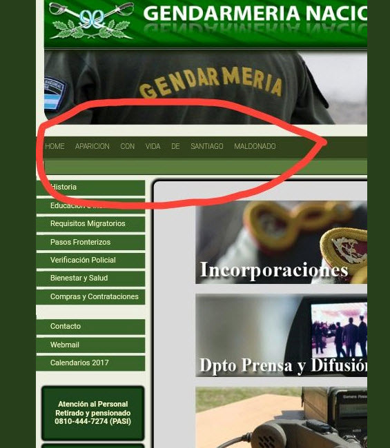 La página web de la Gendarmería Nacional fue hackeada en las últimas horas, donde colocaron la leyenda “Aparición con vida de Santiago Maldonado”, el artesano desaparecido el 1 de agosto en Chubut durante el desalojo por la fuerza de un grupo de mapuches que cortaba la ruta nacional 40.