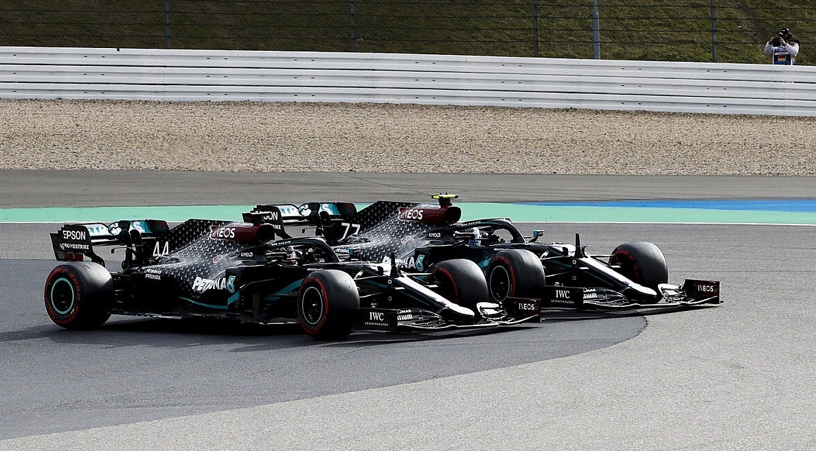 El triunfo del piloto de Mercedes estuvo acompañado del abandono de su compañero Valtteri Bottas, quien mantuvo el primer lugar luego de largar desde la pole, pero en la vuelta 13 bloqueó el neumático delantero derecho dándole la oportunidad a Hamilton para sacarle el liderazgo.