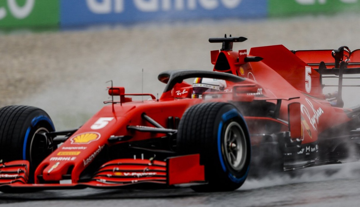 Con un demora de 46 minutos, Sebastien Vettel fue el primero en colocarse en el final de la calle de boxes para salir en primer lugar a la pista y no tener el spray de otros autos por delante al iniciar la clasificación.