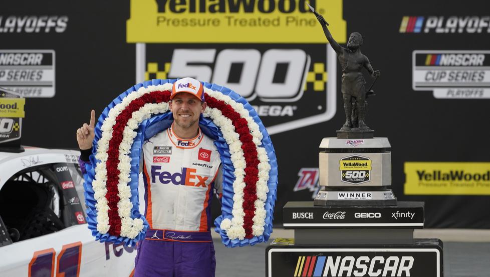 En los últimos metros de la Nascar en el circuito de Talladega los protagonistas se sacaron chispas por roces y apareció Denny Hamlin con el Toyota de Joe Gibbs Racing para celebrar su séptima victoria en el cerrtamen y la 44 en su estadística personal, superando por 8/100 a Erik Jones, su compeñero de equipo.