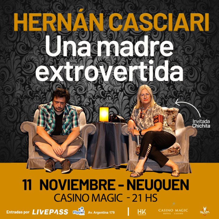 El espectáculo es desopilante y con una impronta bien real. Cuenta historias de su infancia, adolescencia y adultez que protagonizó junto a su madre “Chichita”, como le dicen. Y quienes puedan ir a la función de este jueves, en el Casino Magic, van a poder conocer en vivo a la mujer que inspira muchas de los cuentos de Hernán Casciari.