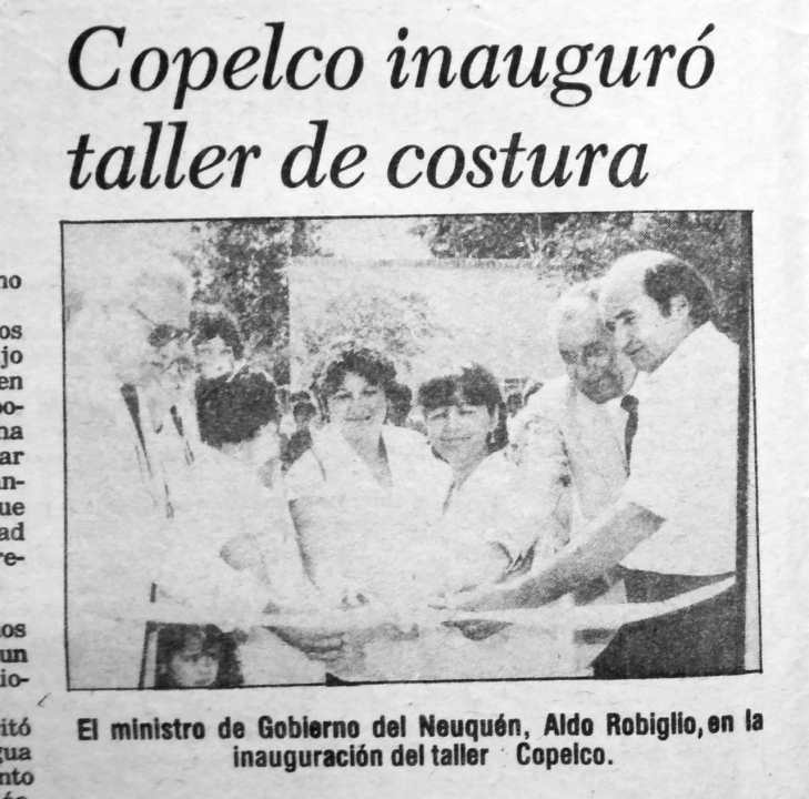 04 de marzo de 1989: La cooperativa distribuidora de energía eléctrica, a través de su departamento de Servicios Sociales habilitó un taller de costura en el barrio Peñi Trapún de Cutral Co.