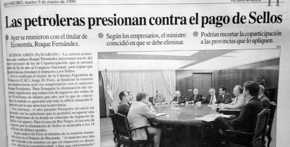 08 de marzo de 1999: Las petroleras presionan contra el pago de Sellos que les cobra la provincia de Neuquén durante una reunión que mantuvieron con el ministro de Economía Roque Fernández.