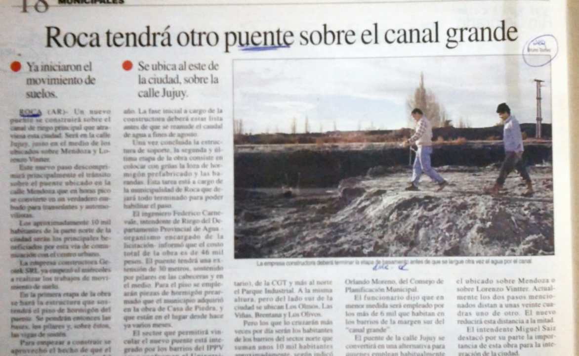23 de junio de 1997: Se anuncia la construcción de un nuevo puente en General Roca, sería construido en la calle Jujuy y construido por la empresa constructora Geotek SRL.