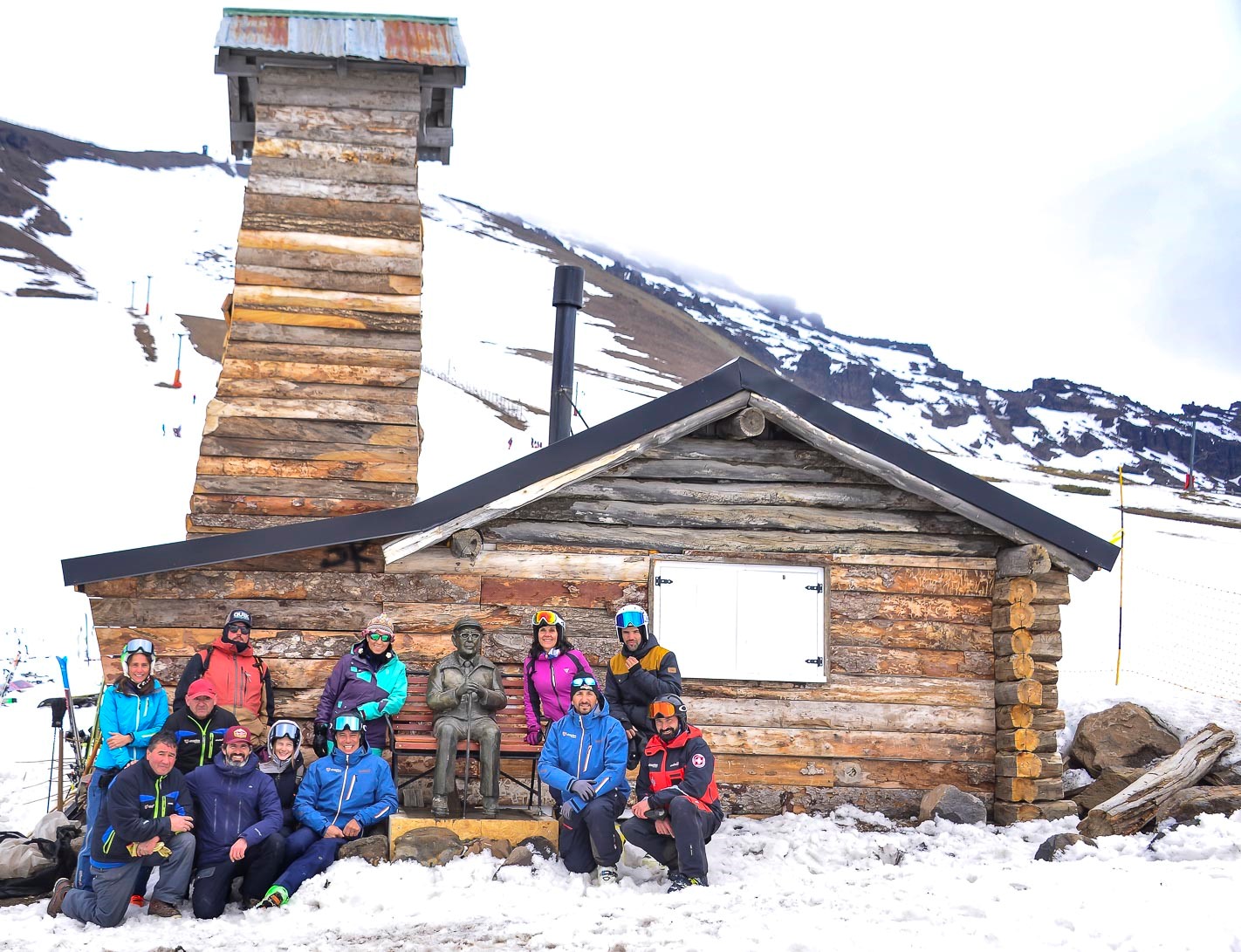 Ante la presencia de la hija menor de Don Américo, Verónica Astete instructora de la Escuela de Esquí Chapelco, se instaló la obra frente al histórico y renovado Refugio Graef, construido e inaugurado en 1948 por un grupo de pioneros, donde se refugiaban durante la noche para esquiar en nieve fresca desde la mañana siguiente.