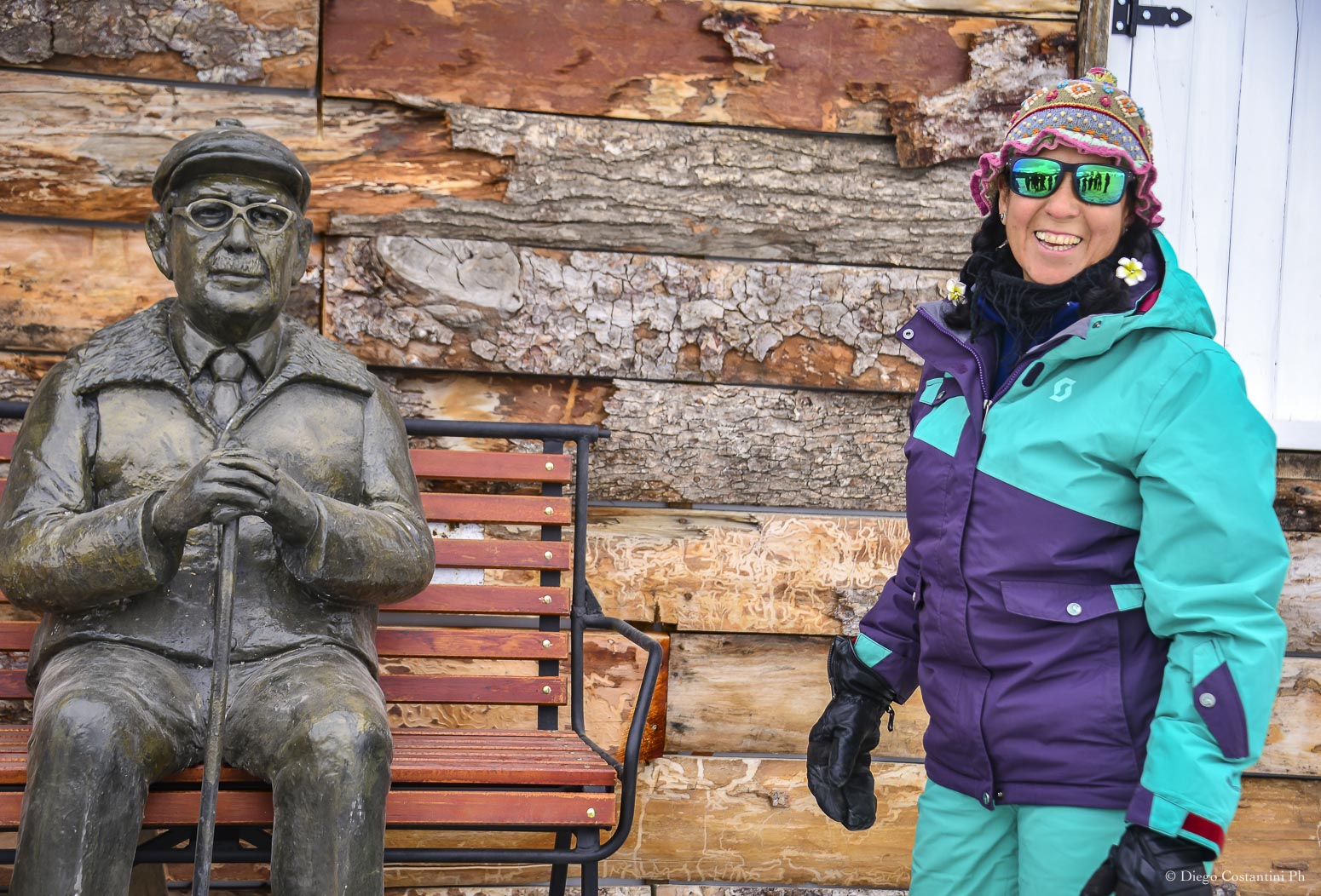 Ubicada en plataforma 1700m en el corazón de Chapelco, lo muestra sentado en su silla, con las manos apoyadas en su bastón custodiando el refugio, con la mirada hacia el volcán Lanín. Este homenaje de Chapelco a los pioneros se da de manera conjunta con las obras de restauración del histórico Refugio Graef realizadas por el Club Lácar de San Martín de los Andes para restituir su valor histórico y donde a partir de ahora se podrán impulsar más actividades para las nuevas generaciones de montañeses.