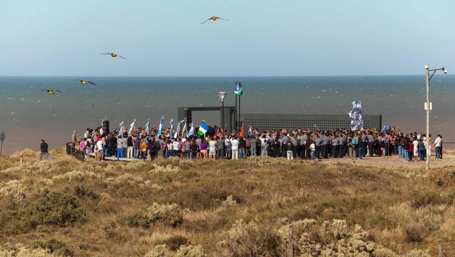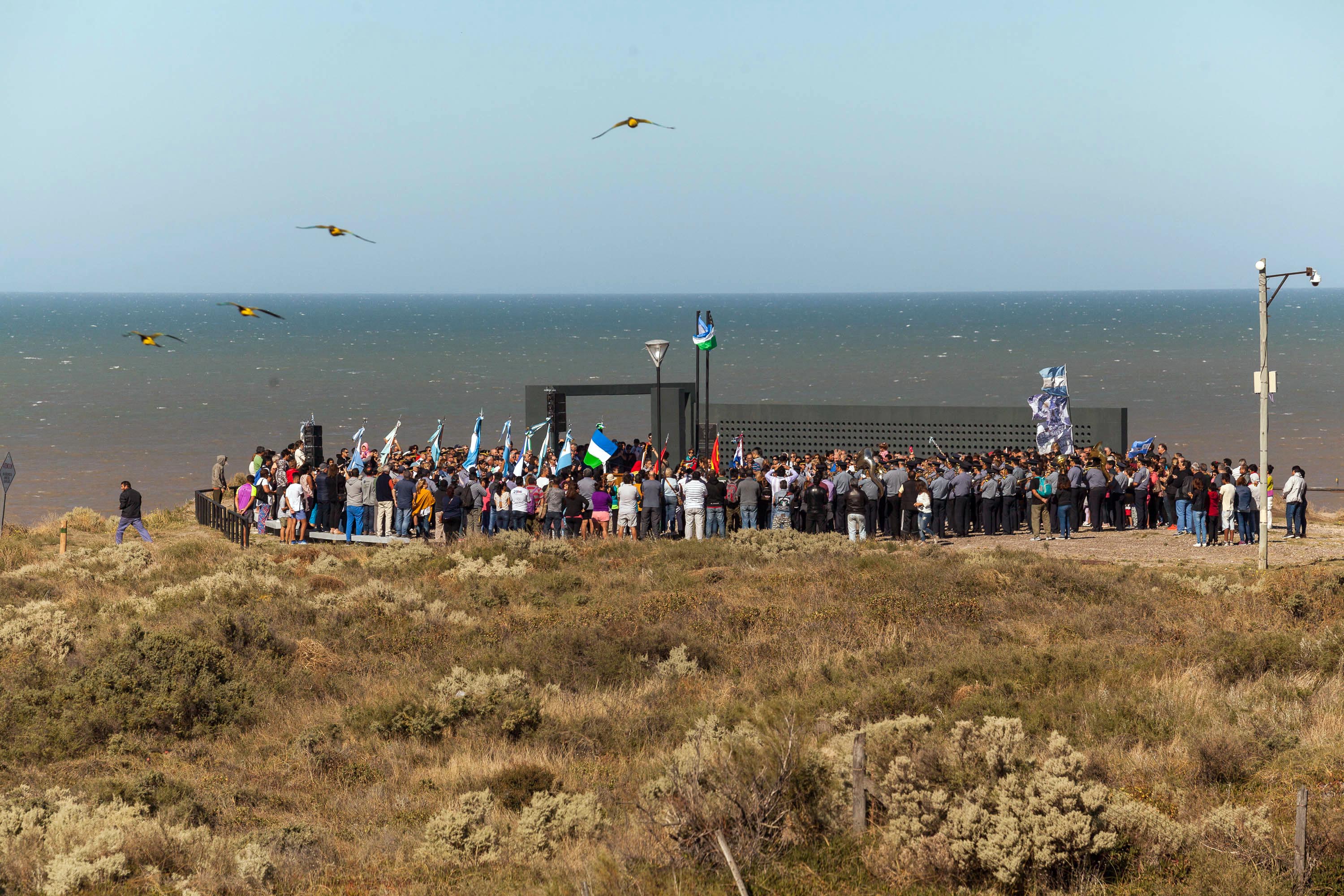 El primer acto se concretó en plazoleta de la ciudad que recuerda la gesta, y luego las autoridades se trasladaron al Memorial ubicado en los acantilados del balneario El Cóndor.