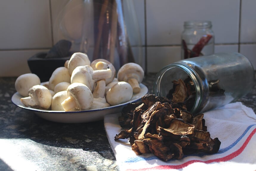 Los hongos, por su parte, son alimentos de agradable textura y sabor. Los hongos comestibles, poseen el doble del contenido de proteínas que los vegetales y disponen de los nueve aminoácidos esenciales, contando además con leucina y lisina (ausente en la mayoría de los cereales). Poseen alta cantidad de minerales (superando a la carne de muchos pescados) y vitaminas. Completan la caracterización sus bajas calorías y carbohidratos.