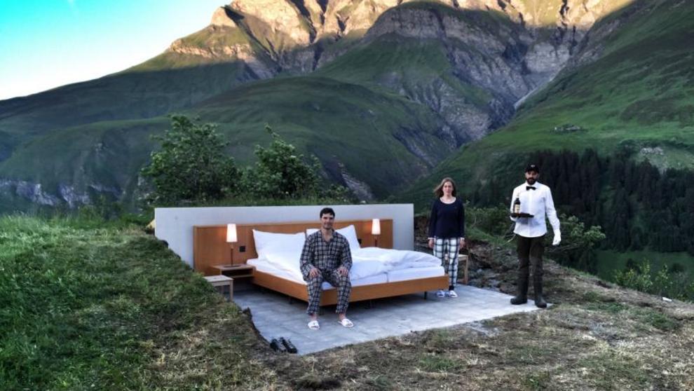 El “Null Stern Hotel” está en los Alpes suizos. Ofrece una habitación al aire libre que permite dormir literalmente bajo las estrellas.