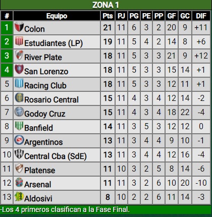 En el interzonal, más temprano, Arsenal dio una de las sorpresas de la fecha al imponerse como visitante sobre Defensa y Justicia, también 1 a 0. El gol de Ezequiel Unsain en contra, tras un remate de Emiliano Papa, le dio el triunfo al conjunto que dirige Sergio Rondina.