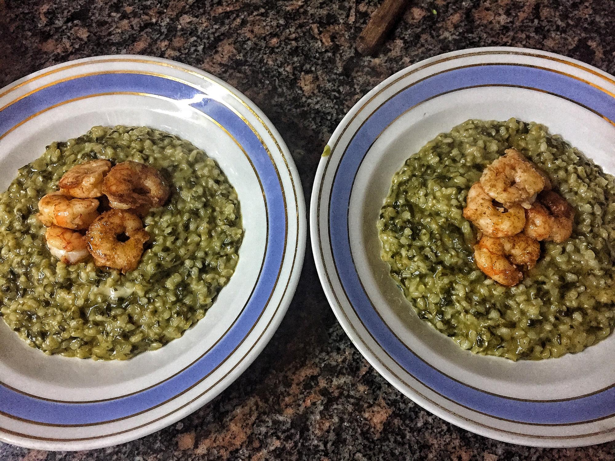 Hoy está ideal para un risotto verde con arroz yamaní y langostinos