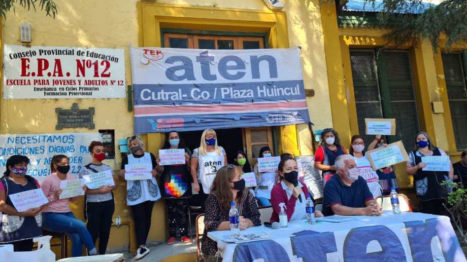 El gremio docente ATEN concretó hoy un "escuelazo" en la primaria Nº 22, que comparte su edificio con la EPA Nº 12 de Plaza Huincul porque es una de las que en peores condiciones edilicias se encuentra. En ninguno de los dos establecimientos se inició el ciclo lectivo.
