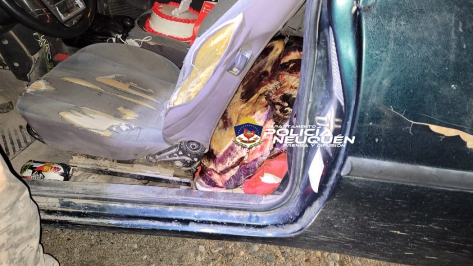 A bordo de una camioneta Chevrolet un hombre llevaba 50 kilos de carne vacuna atrás del asiento y una torta de cumpleaños en el del acompañante. La división Brigada Rural y Abigeato de Junín de los Andes lo detuvo en medio de la Ruta 40, en la intersección con la ruta provincial 52, ya que se había denunciado que estaría realizando abigeato.